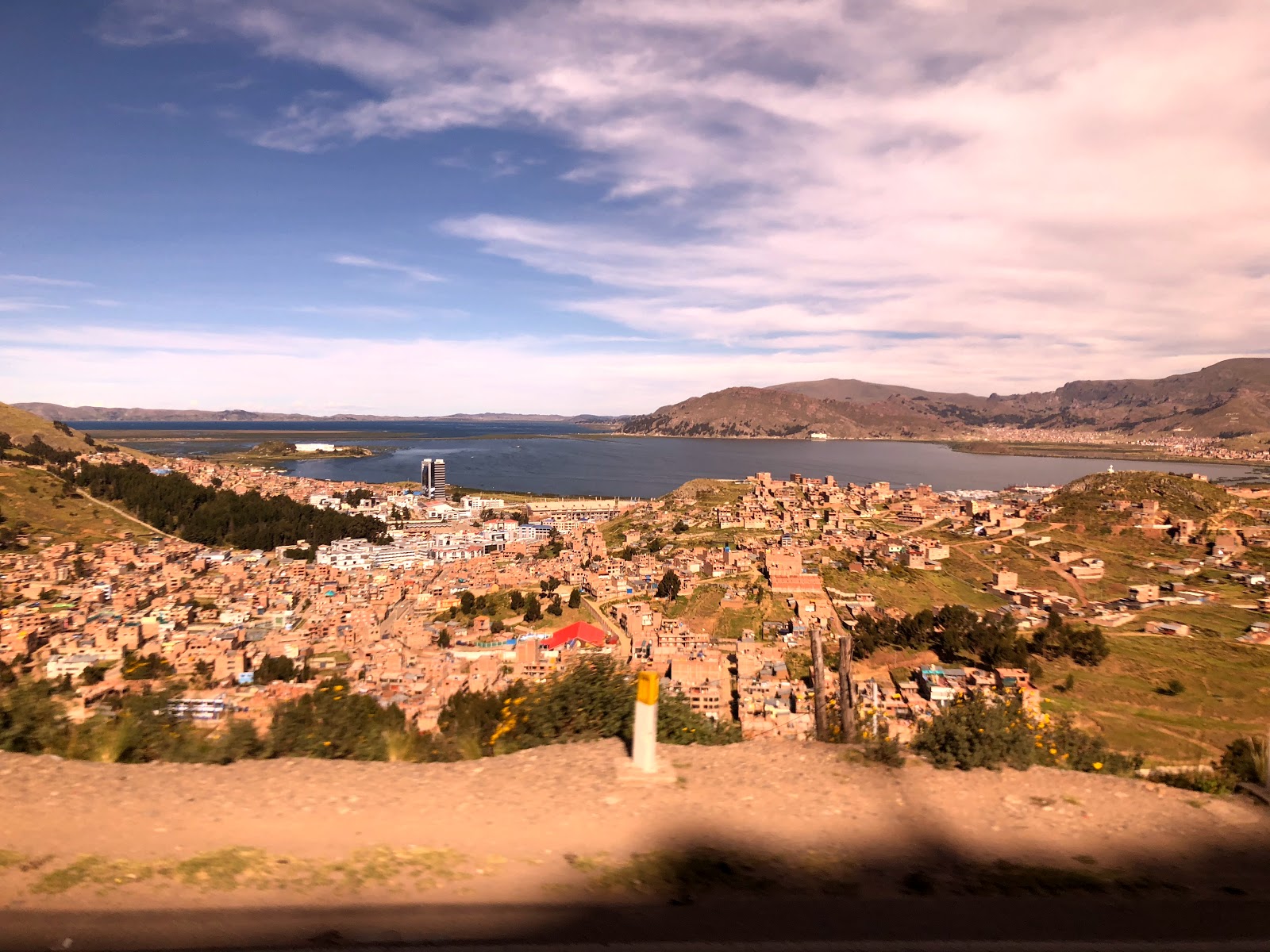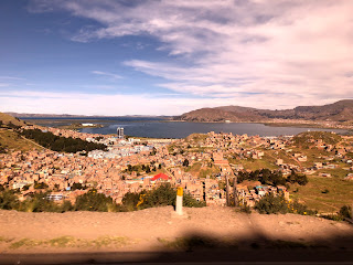 Arriving in Puno, Lake Titicaca stretches way into the distance. Andrew and I managed to get out for a run – nothing like the challenge of 3800m!